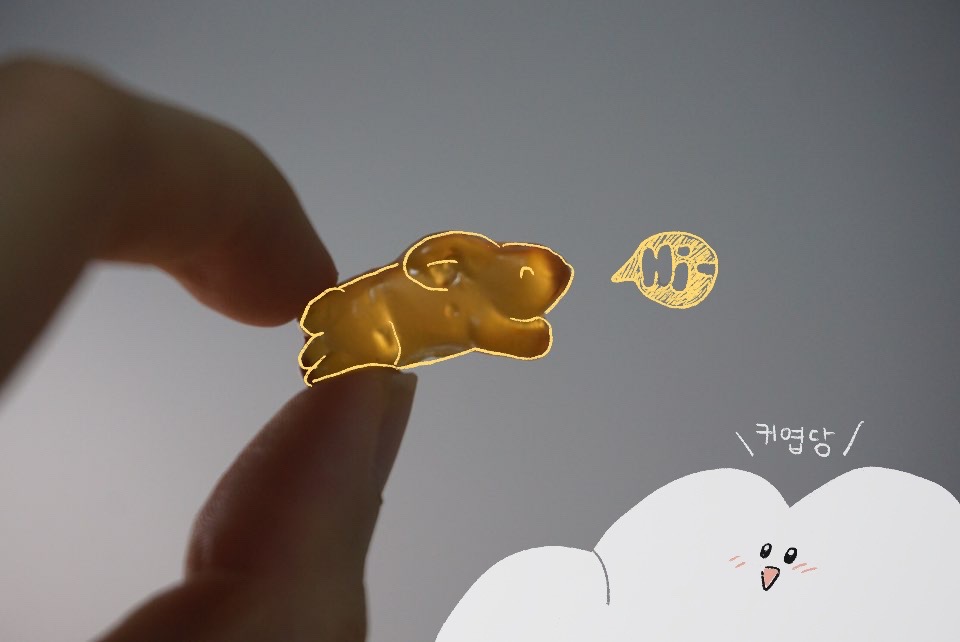 젤리의 색깔은 자주색 당근, 호박, 블랙 커런트 추출물 등 유기농 재료로 색을 내었다해요..💛