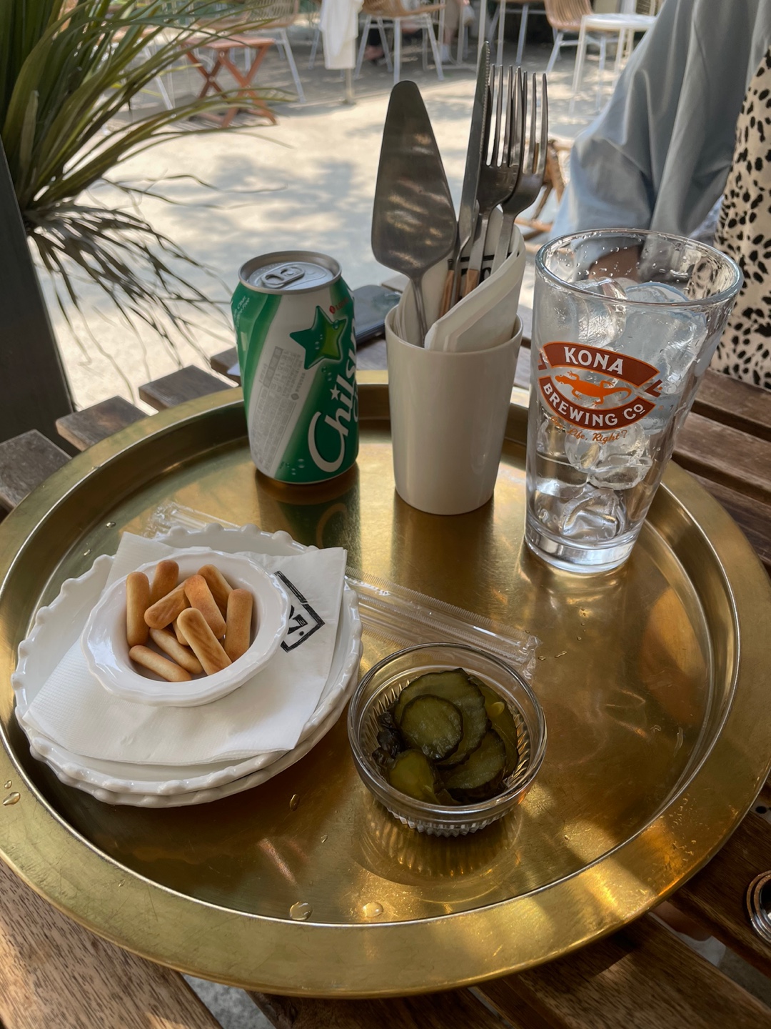 주문한 메뉴가 나오기 전 음료와 스틱과자를 주셨어요!