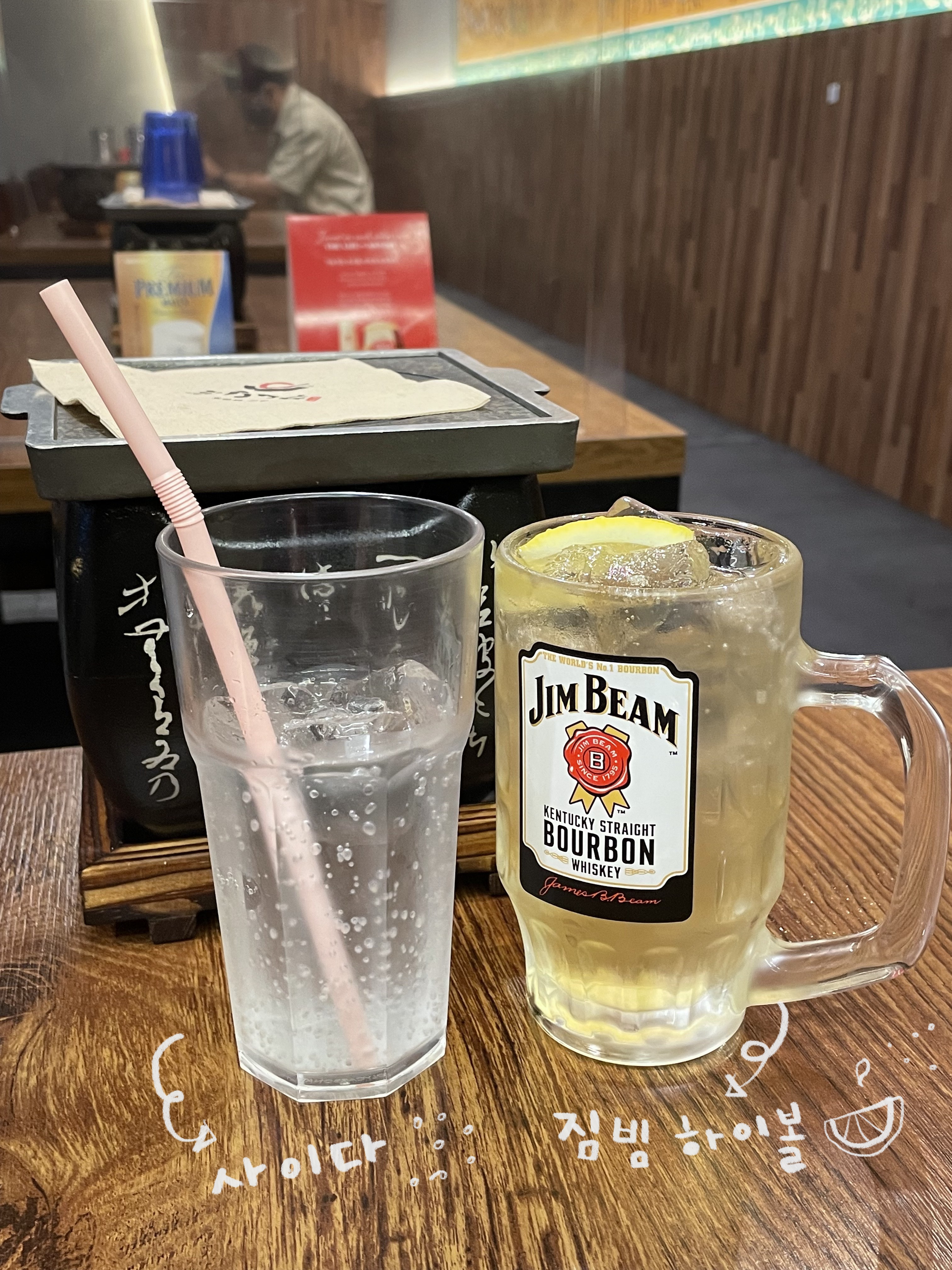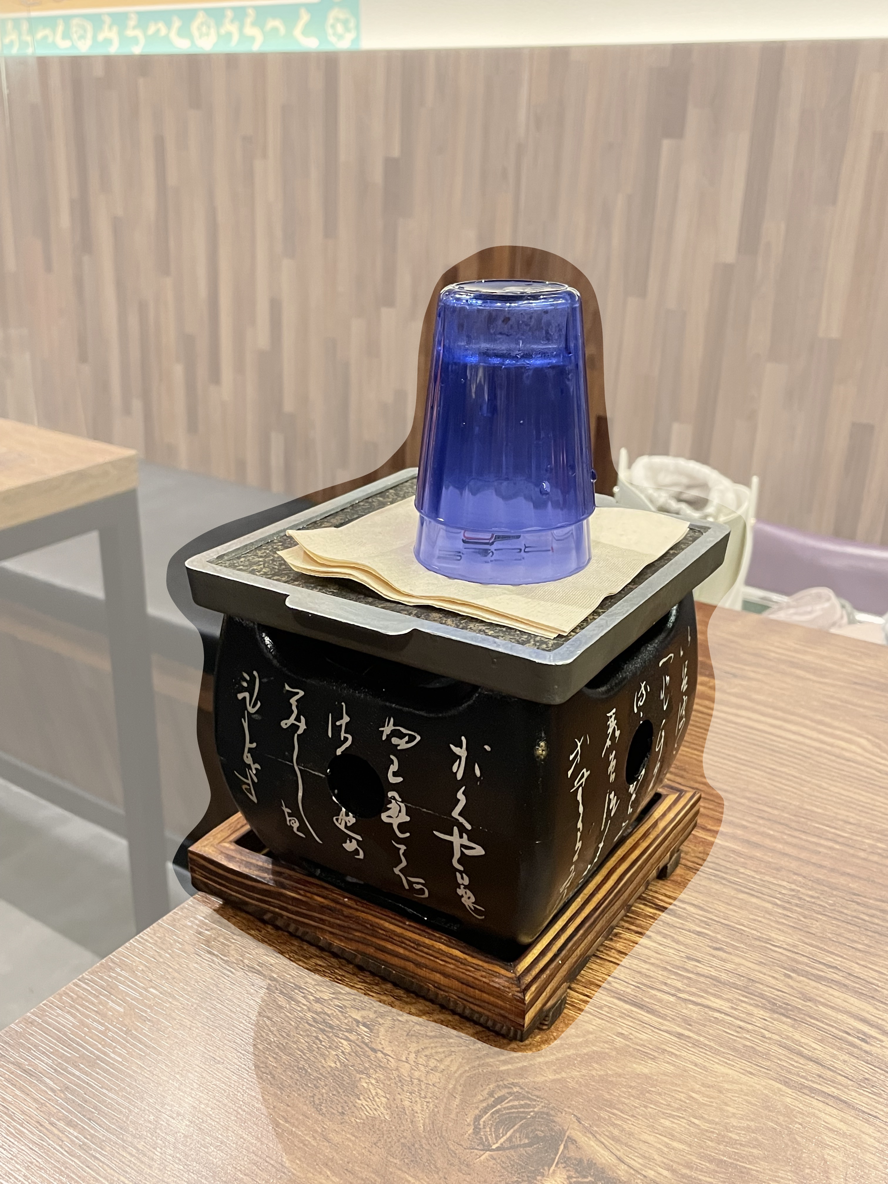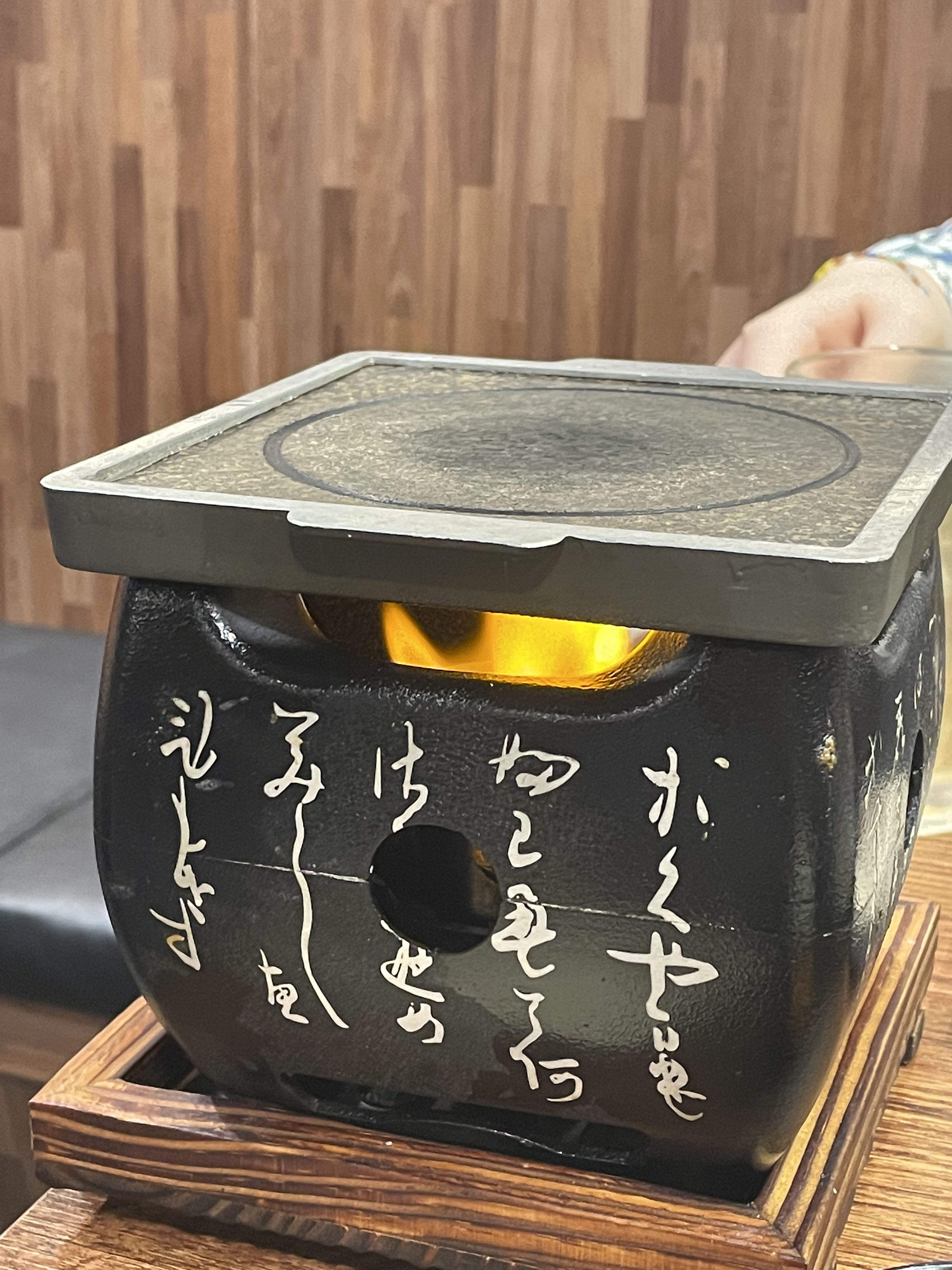 그리고 테이블 한켠에 있는 미니화로와 물컵~