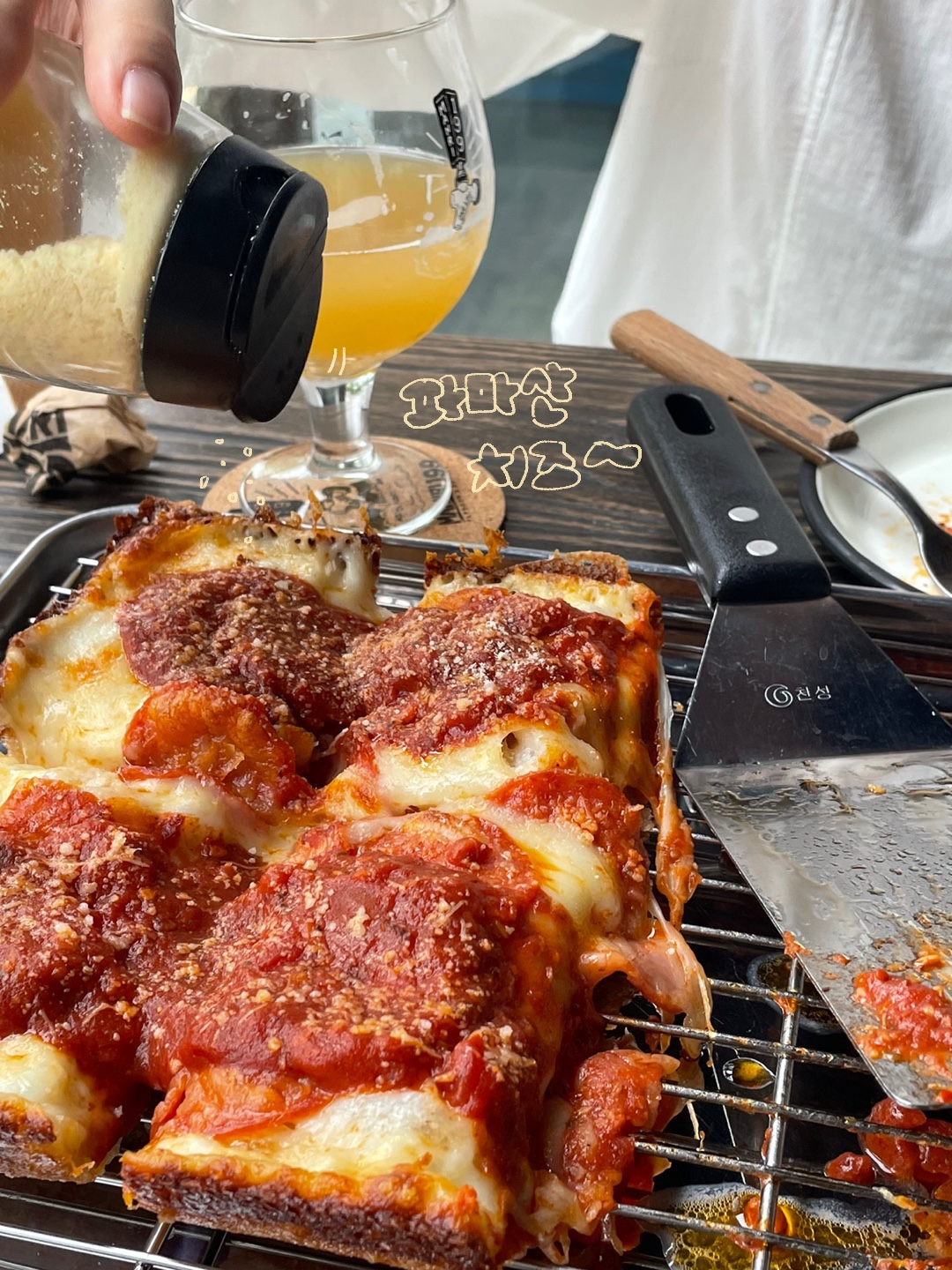 도톰한 빵인데 부드럽고 바삭한 팬피자.. 랄까요?!????