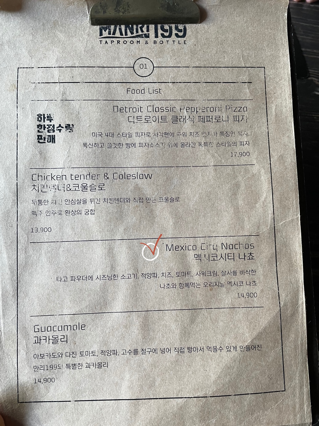 음식 메뉴판 뒷장이 하나 더 있었는데..
