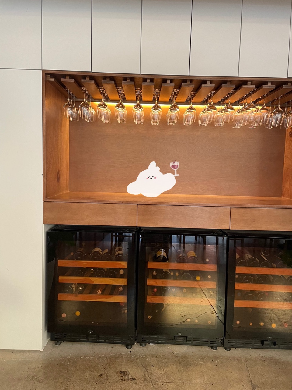 피크닉 바에서 이용하는 와인들과 잔인가바요