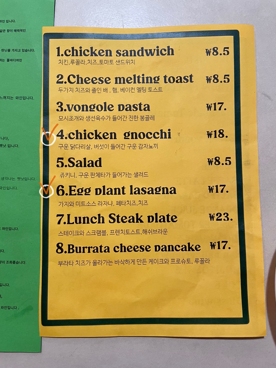 메뉴판에 논알콜 메뉴가 없어서 따로 여쭈어보니