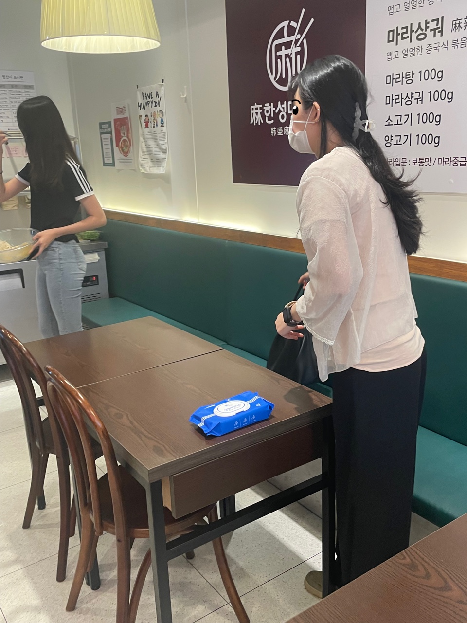 들어가자마자 문앞에 손소독제와 명부작성 표가 놓여져 있답니다!