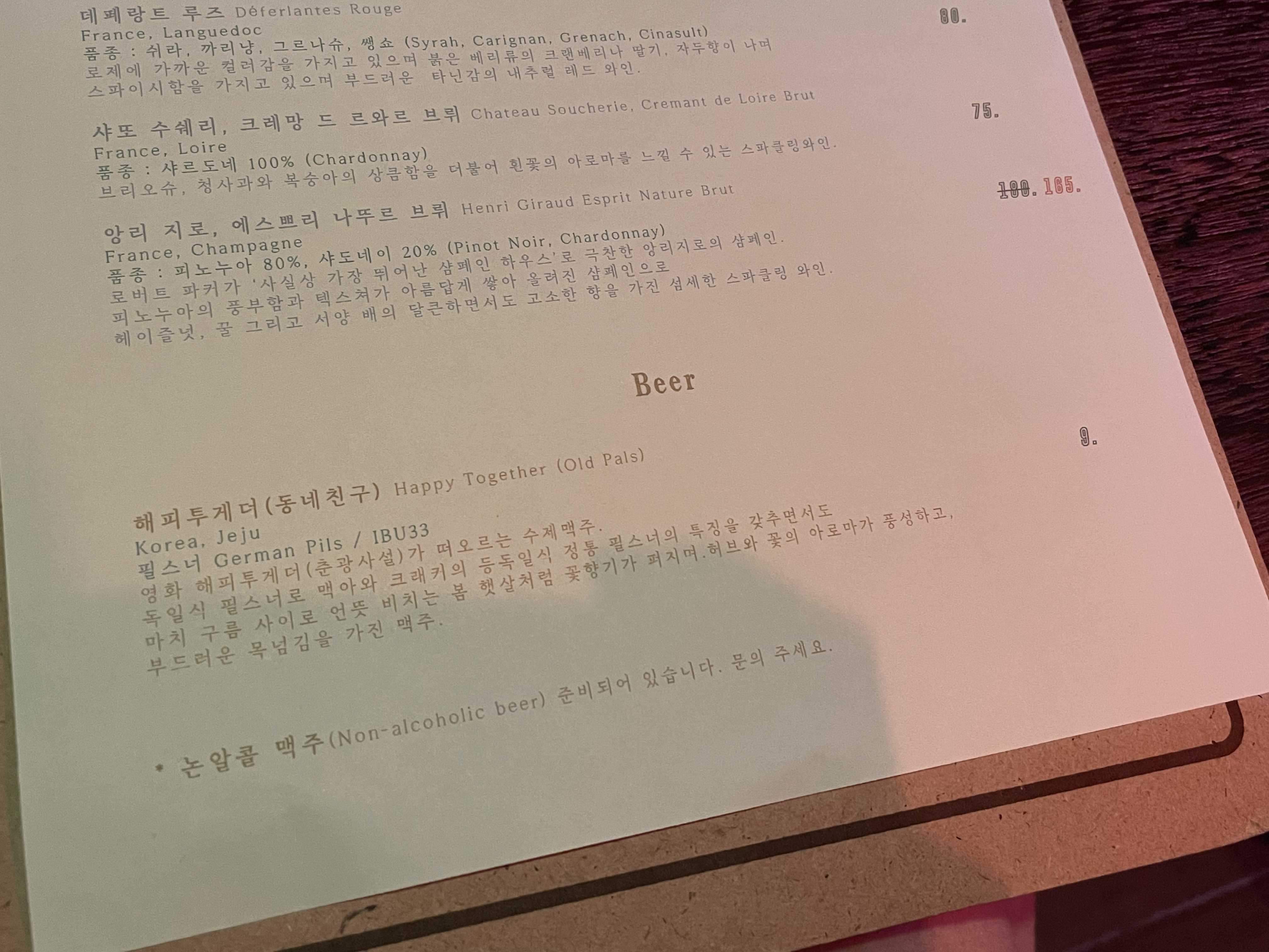 글라스 와인은 따로 판매되지 않고 보틀로만 판매되고 있더라구요!