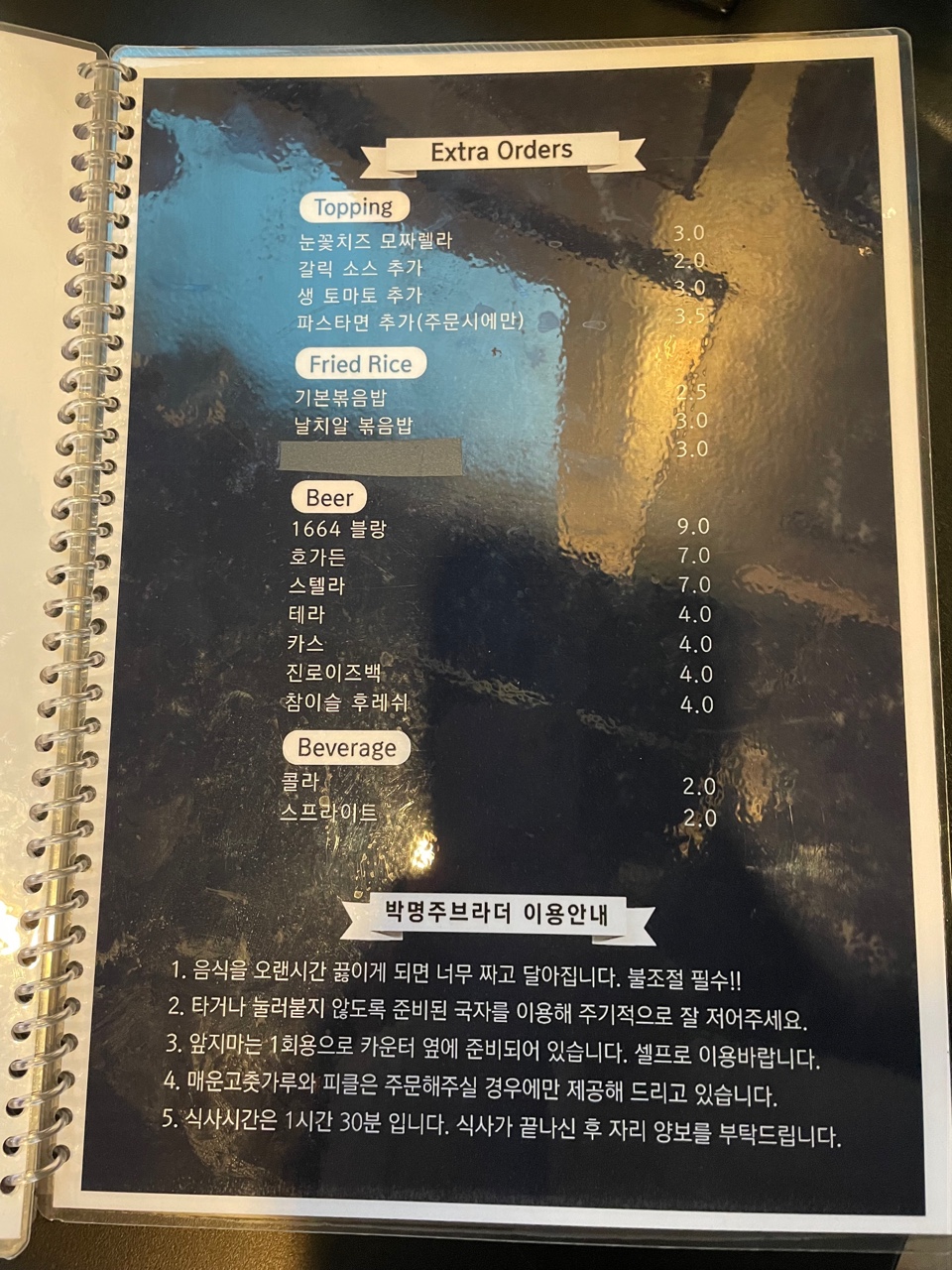 추가메뉴와 음료 메뉴판!