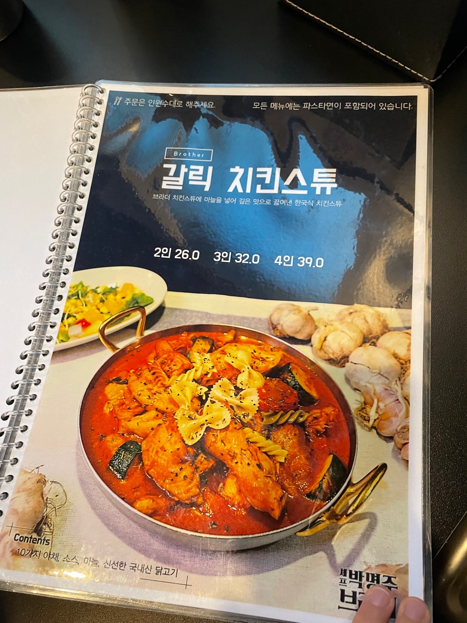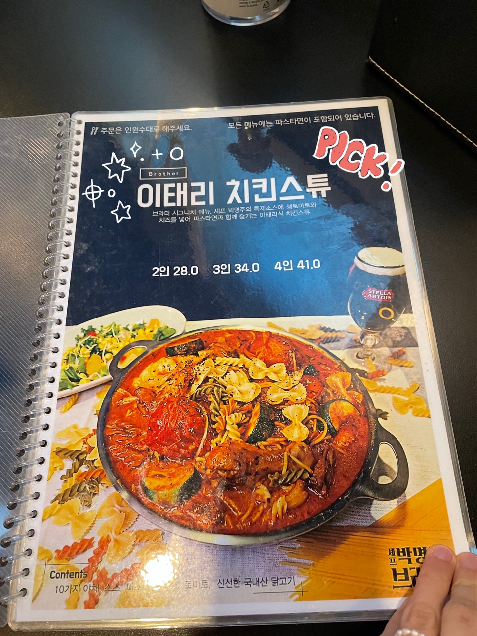 저희는 이태리 치킨 스튜를 픽 하였답니다!
