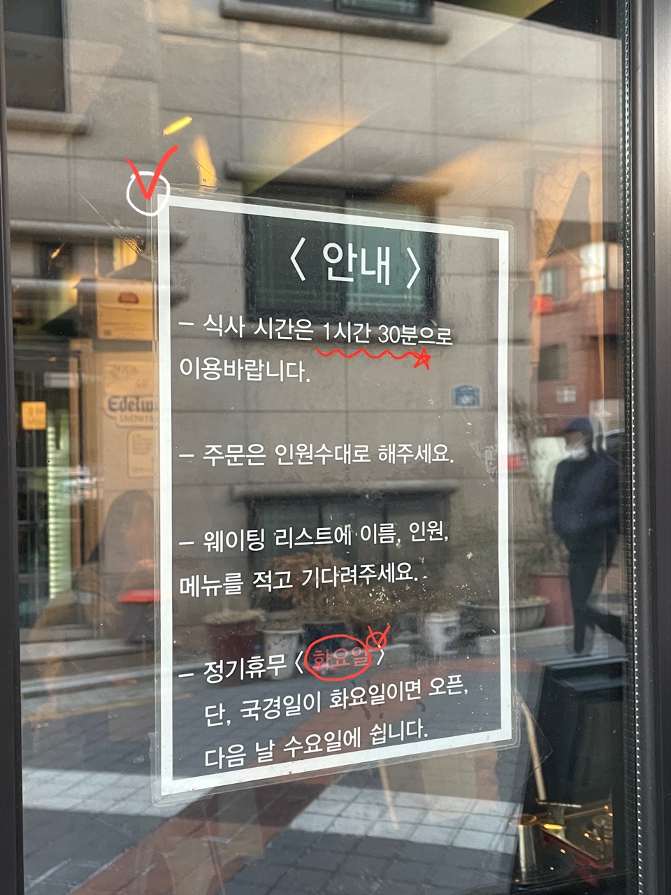 문 앞에 적힌 안내 문구!