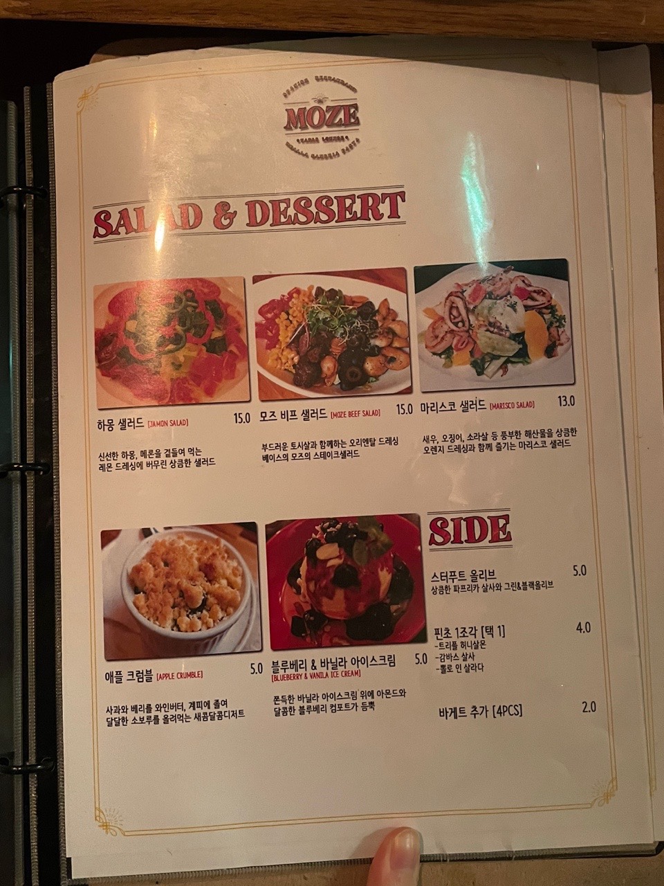 뒤로 넘기면 이제 단품 메뉴를 볼 수 있답니당