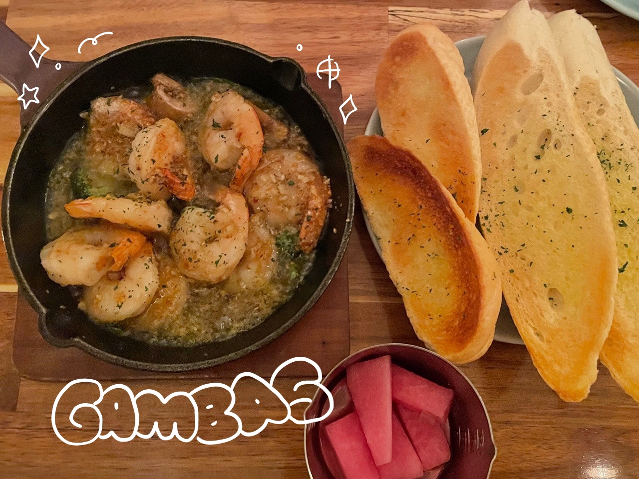 감바스에 곁들인 바게트를 추가 주문했어욥