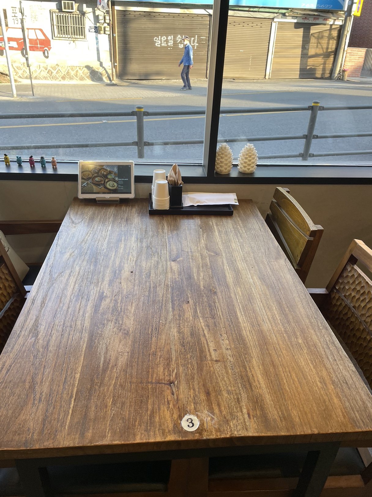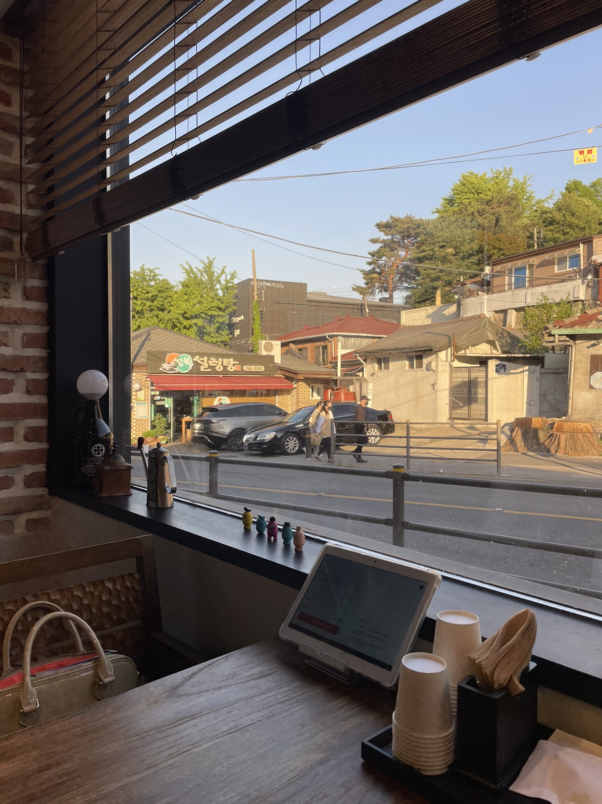 안쪽 창가석을 골라 앉았어요~