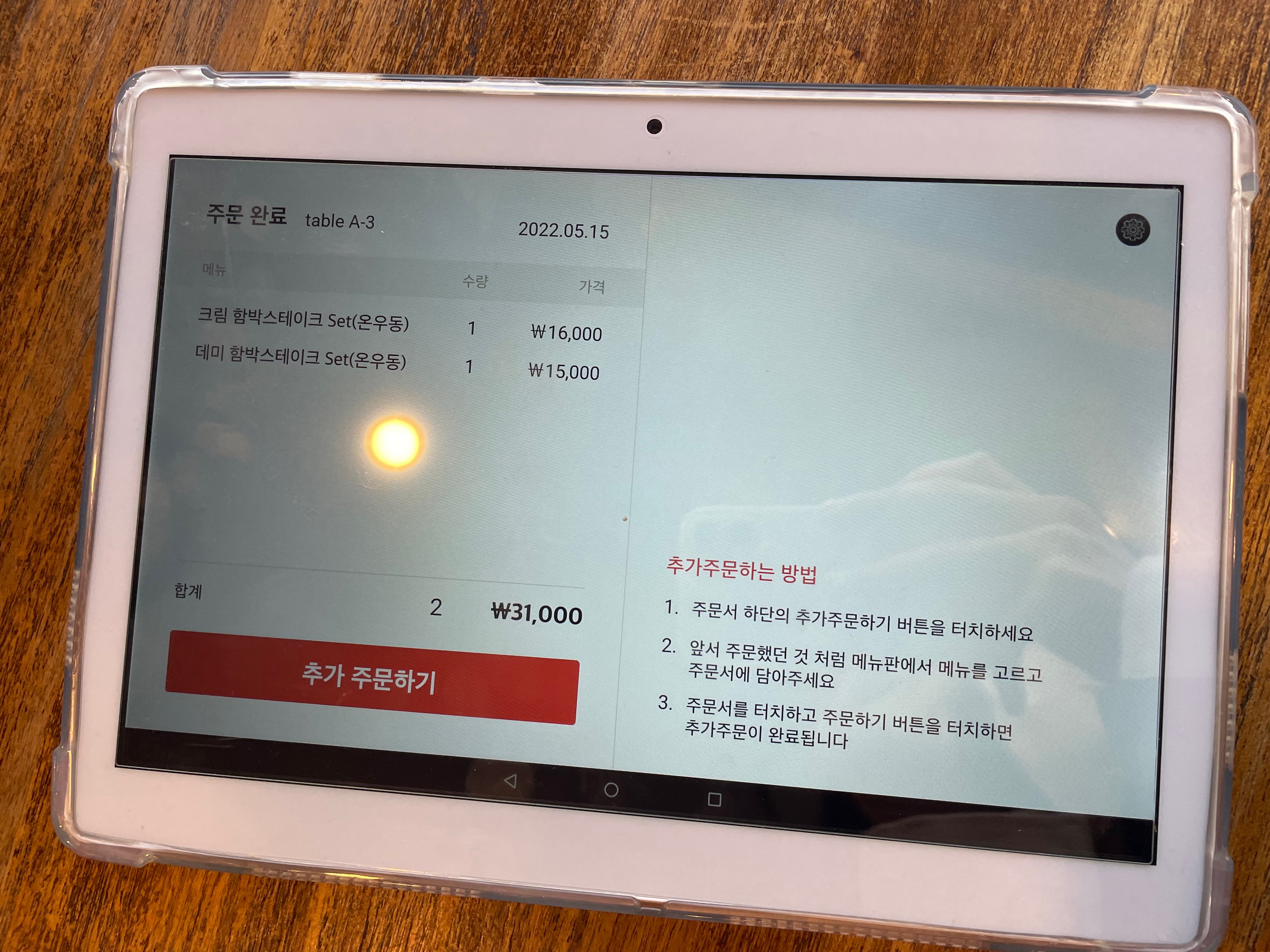 테이블 마다 태블릿이 구비되어 있더라구요~