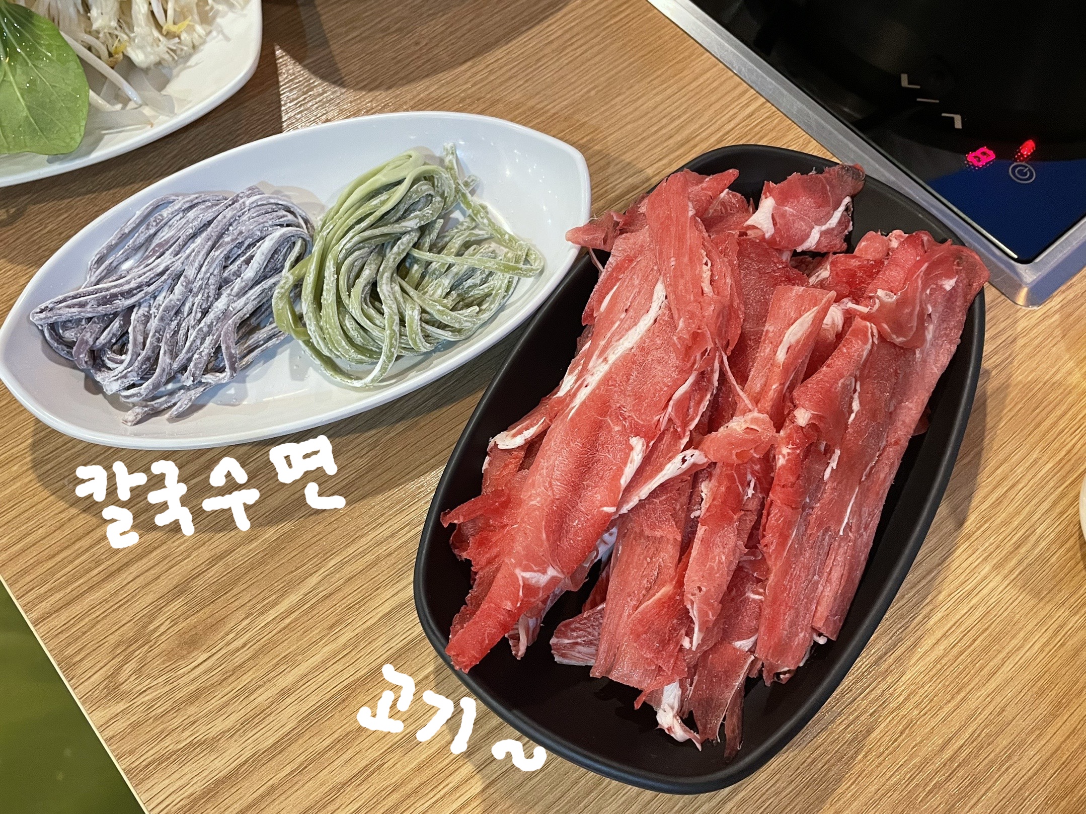 기본 세트인 고기와 칼국수 면을 받았어요!