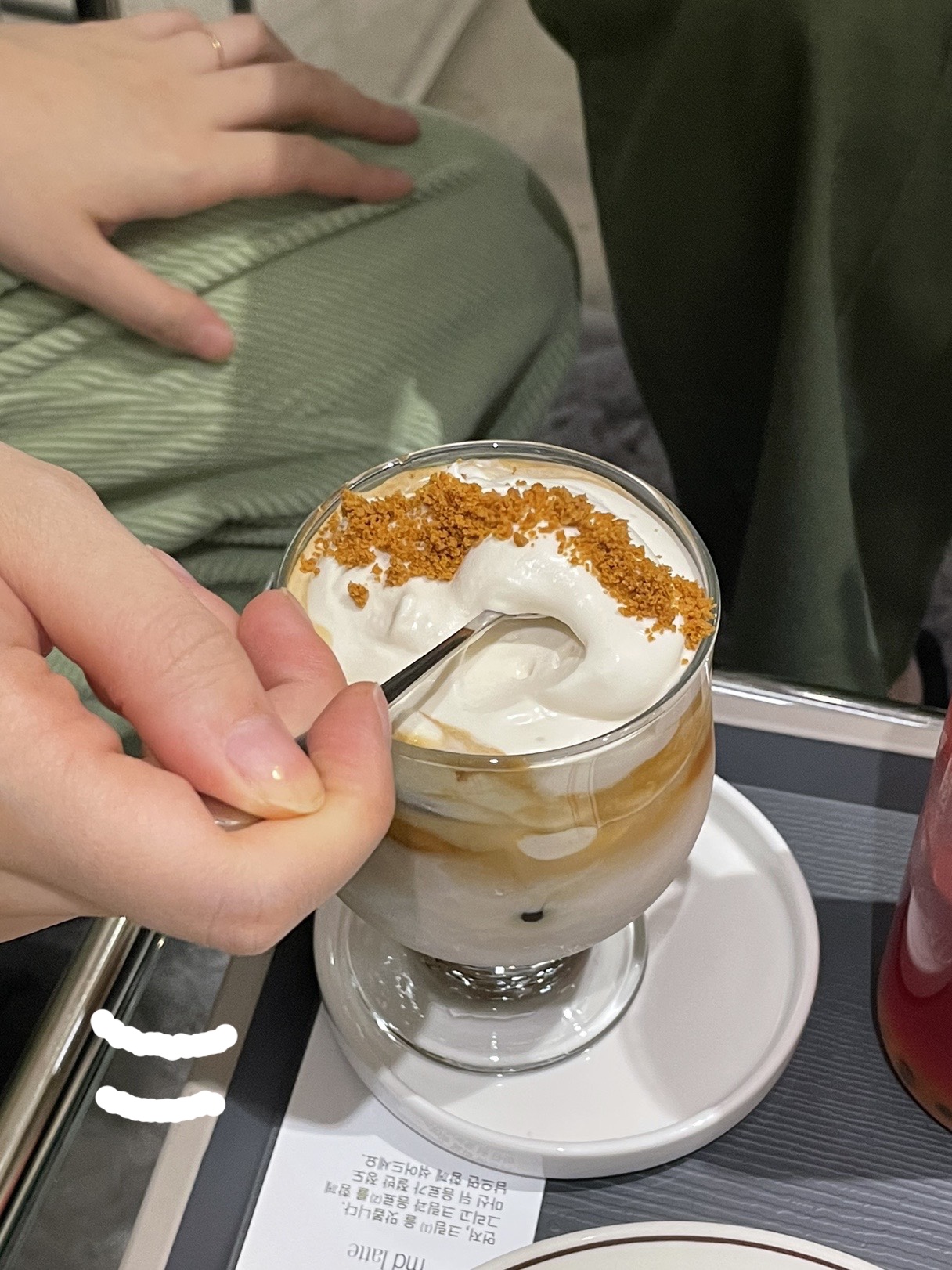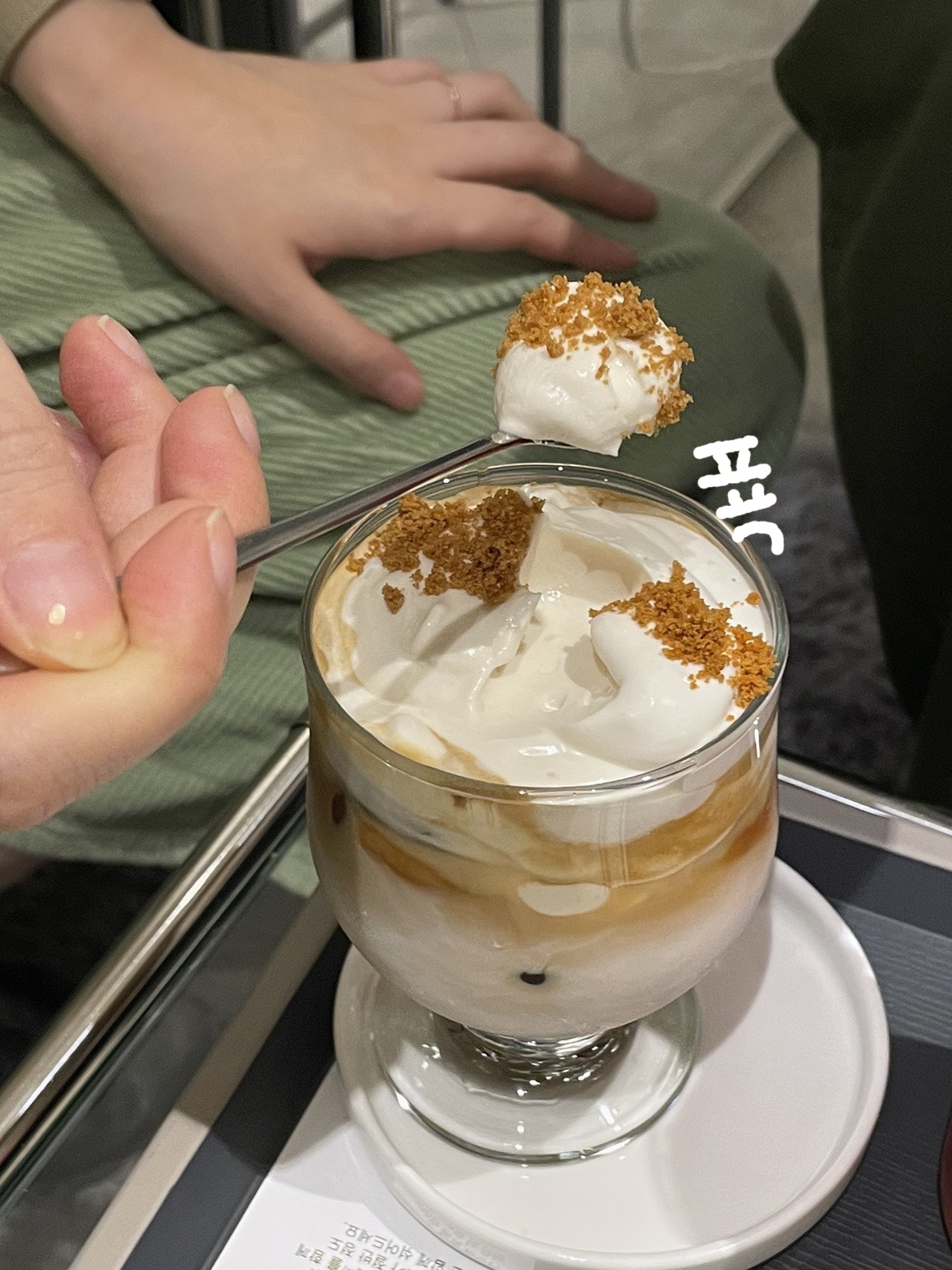 크림과 커피를 살포시 섞어 먹어보는 듀링!