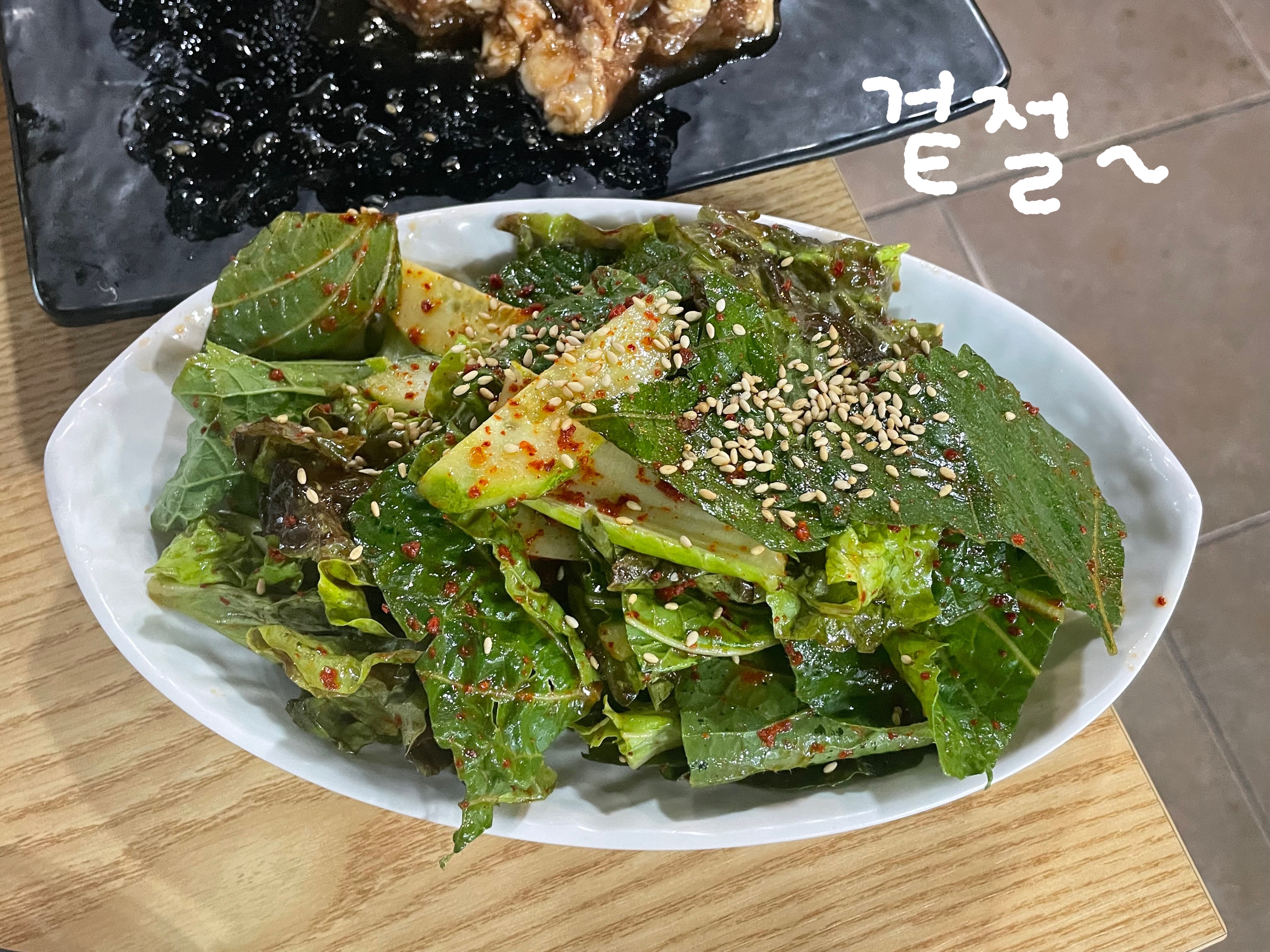 상추, 배추, 마늘, 쌈장, 양파, 김치 등등