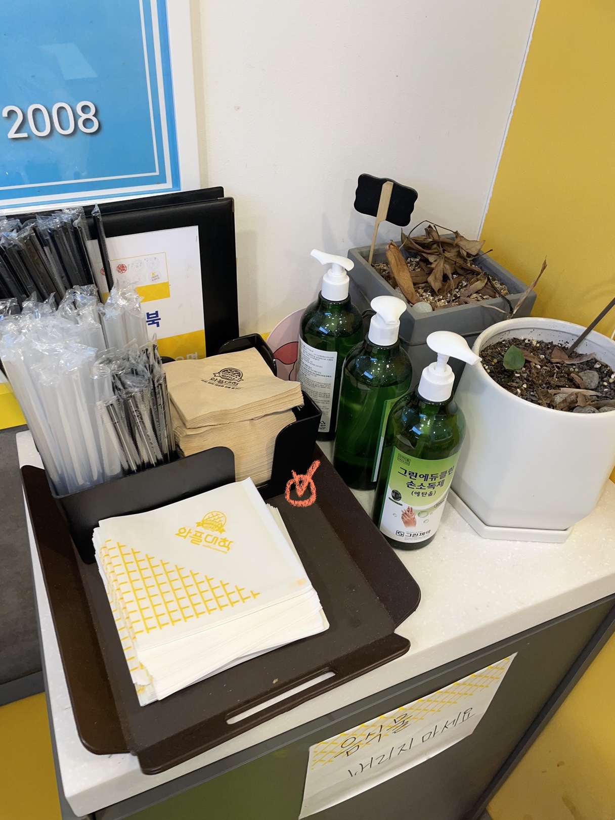 손소독제와 티슈, 빨대, 여분의 와플 포장지!