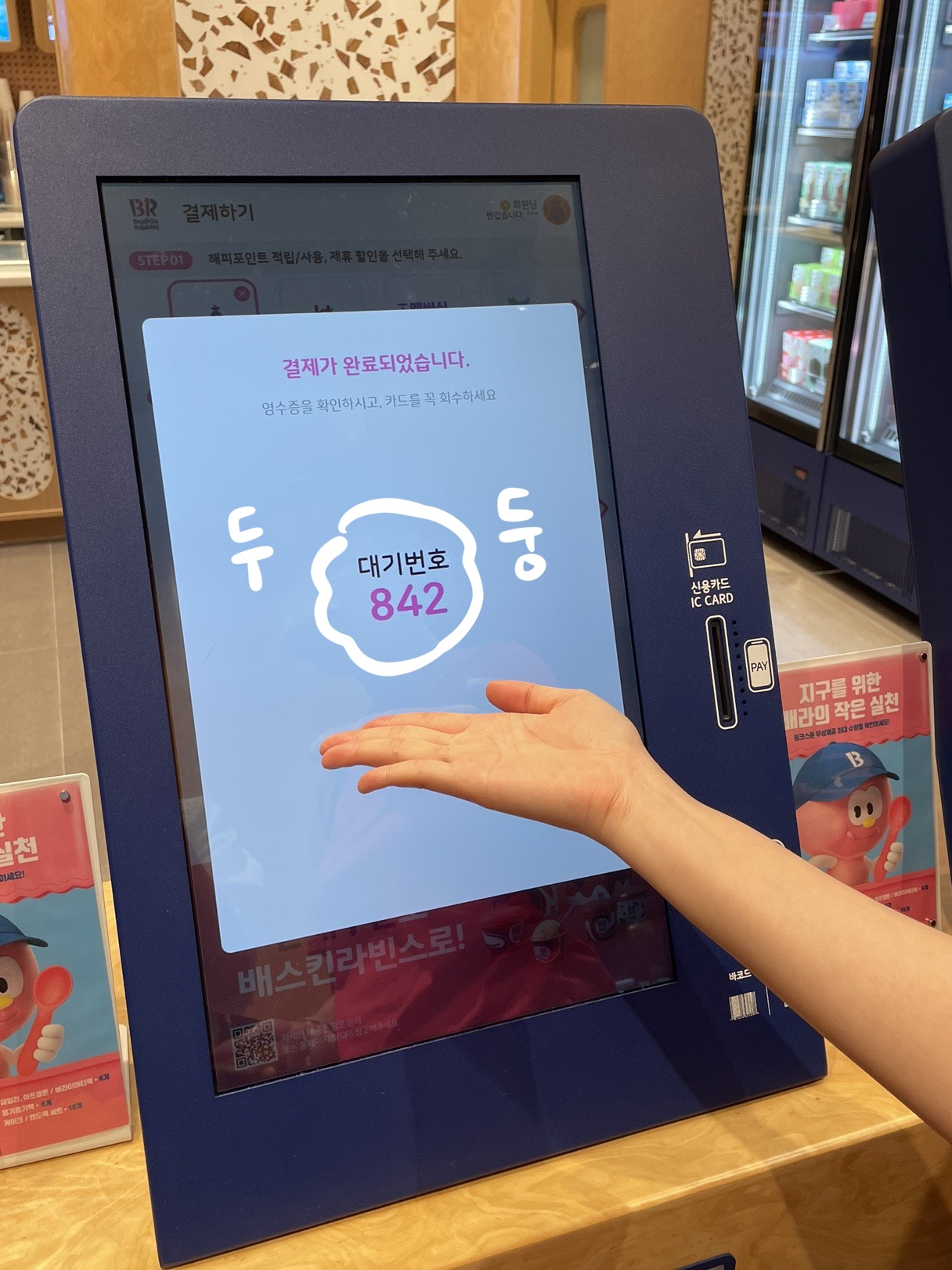 키오스크가 있으니 직접 아이스크림을 구경하지 못하여