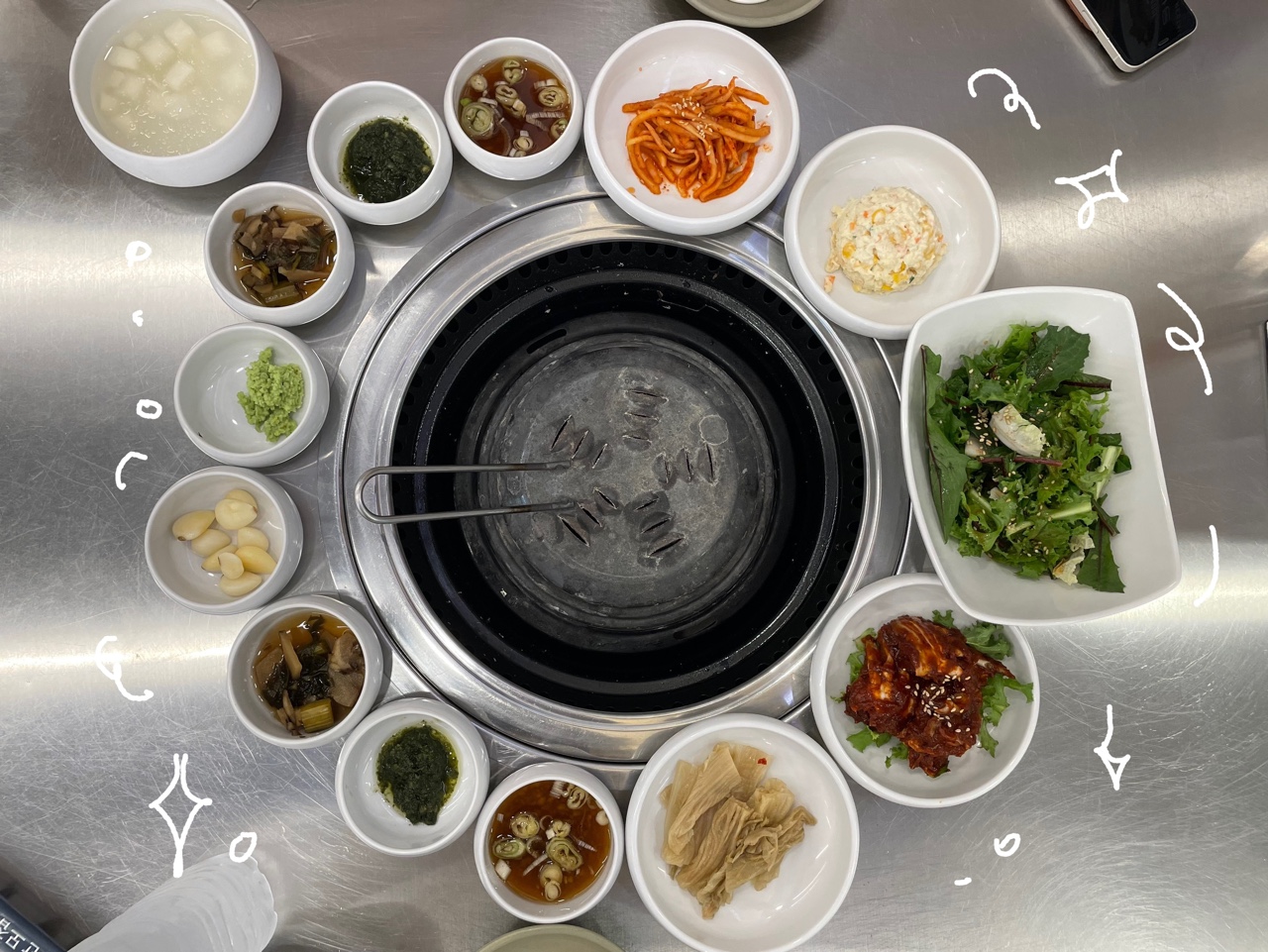불판을 중심으로 빙그르르 자리잡은 모양이 너무 귀여웠답니다