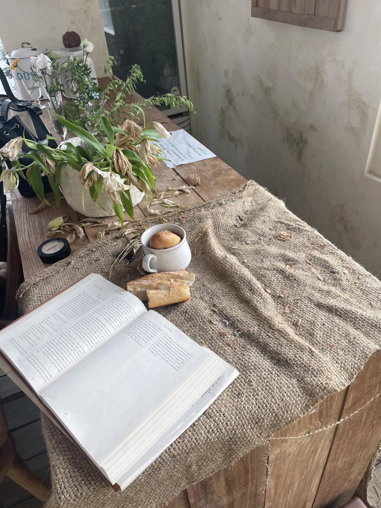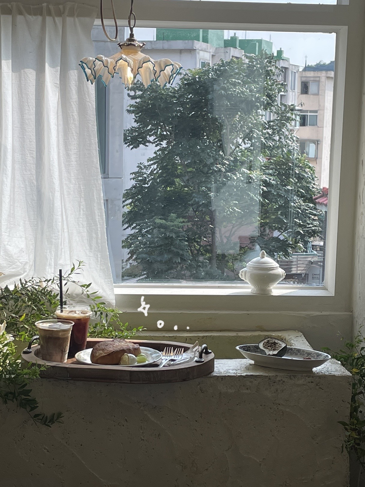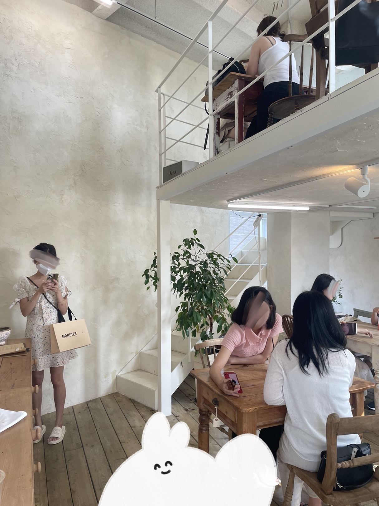 햇빛이 촤르륵 들어오고~ 공간대비 테이블도 적게 배치되어 보다 조용한 분위기의 공간이었답니다!