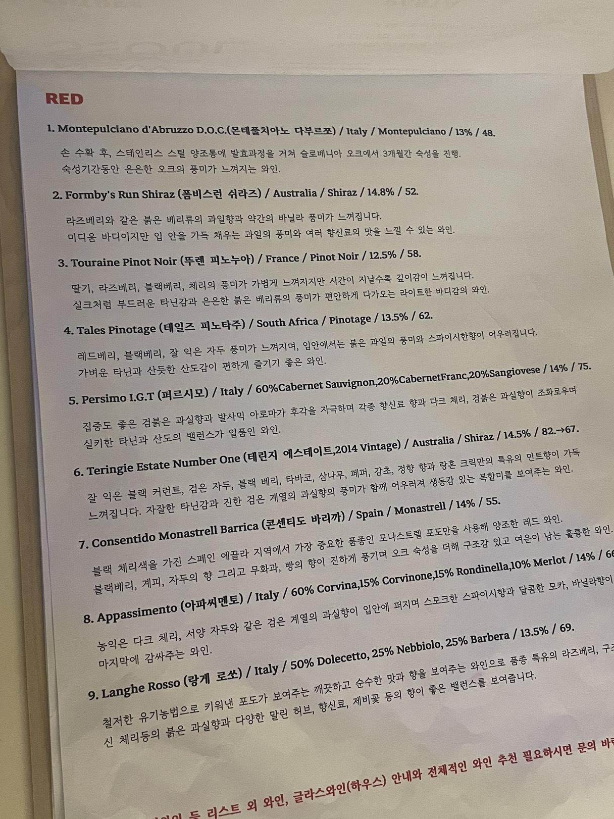 뒤로 한장 더 와인설명메뉴판이 있던거 같은데