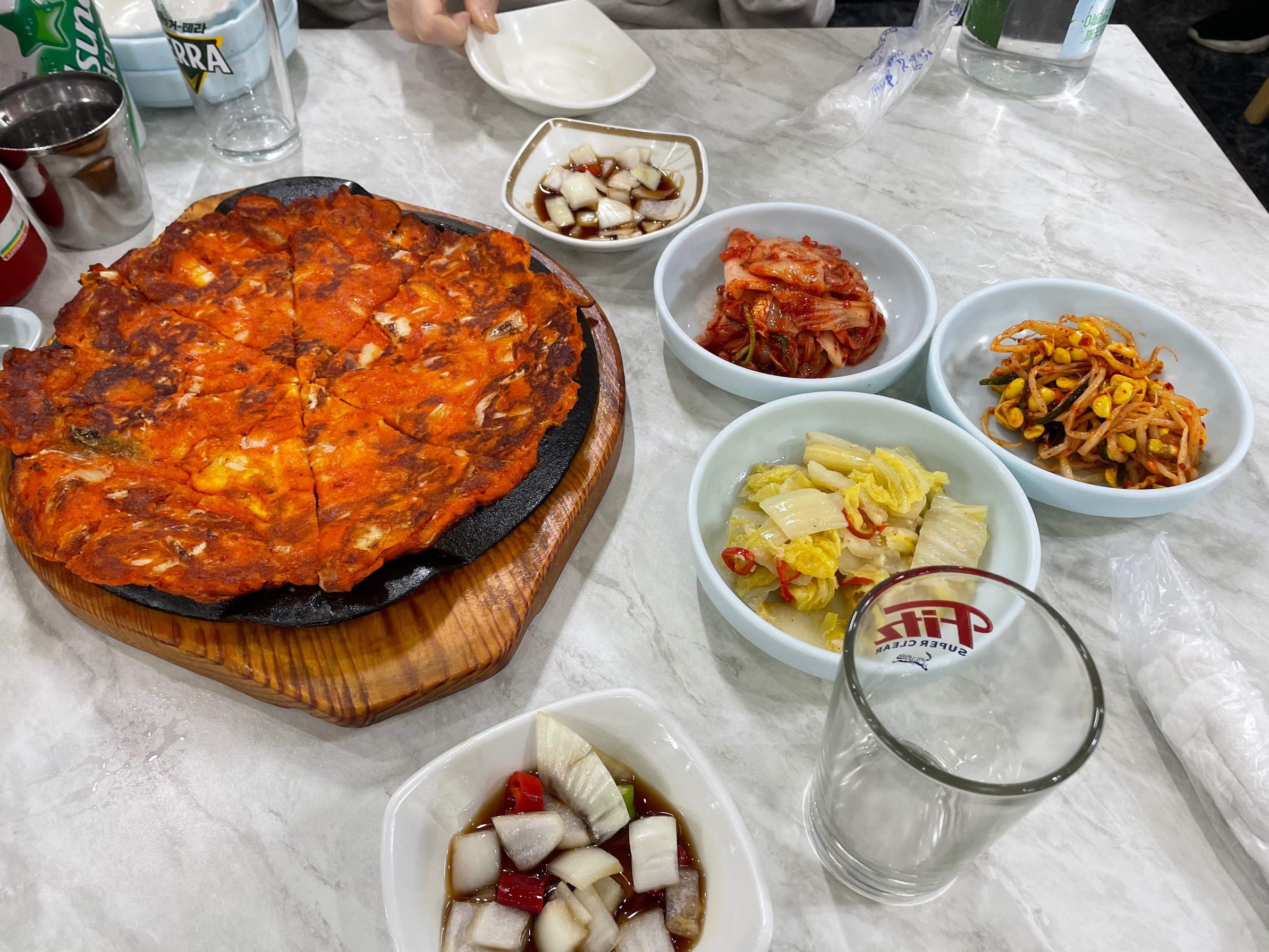 김치전이랑 밑반찬이 먼저 호다닥 나왔어요!