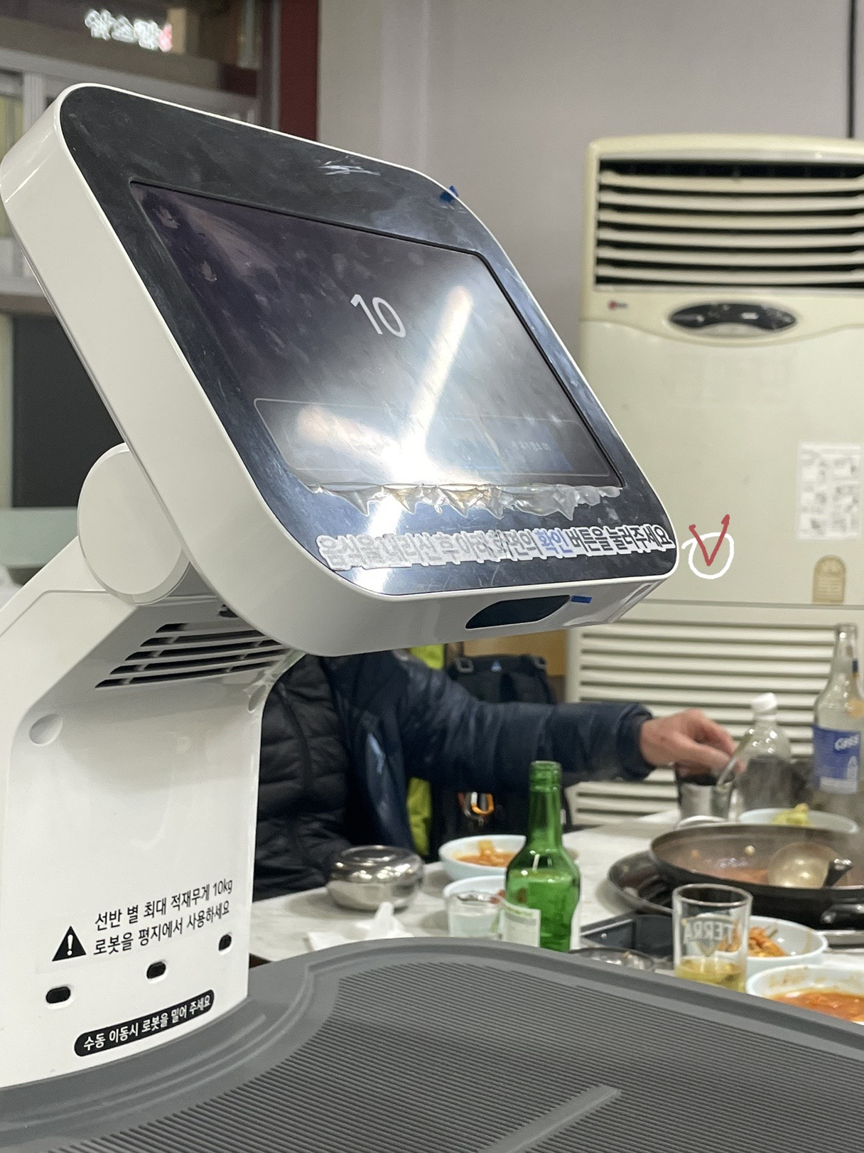 사장님의 도움을 받아 바닥 틈을 지나간 로봇이는 한바퀴 돌아 옆으로 지나가주었답니다ㅋㅋ